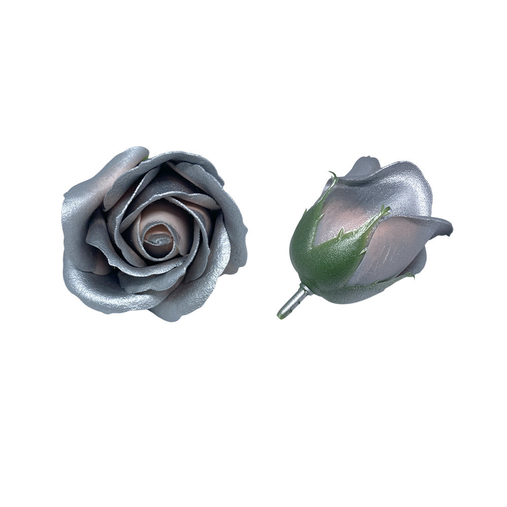 Szappanrózsafej 5x6cm cm ezüst-rózsaszín: csillogó részletek, puha tapintás és látványos kivitel.