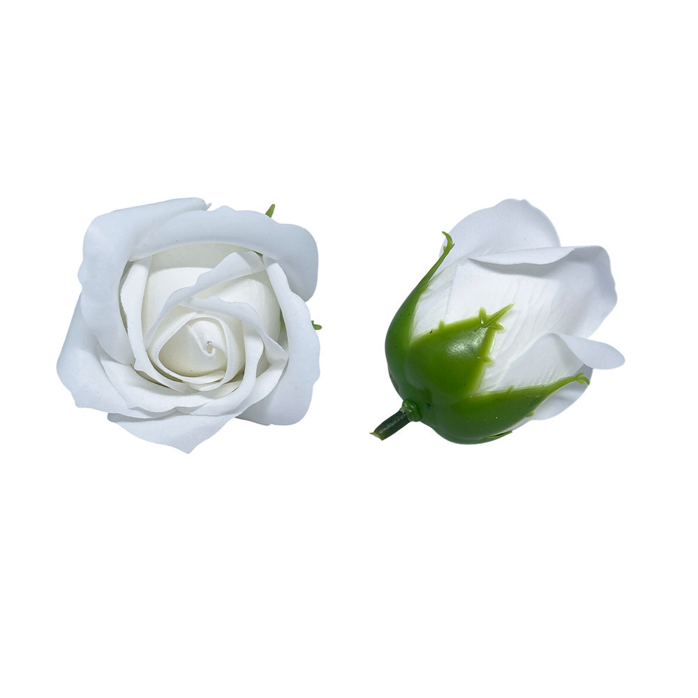 Szappanrózsafej 8x6,5cm cm fehér db: stílusos és időtálló díszítés ajándékcsomaghoz vagy dekorációhoz.