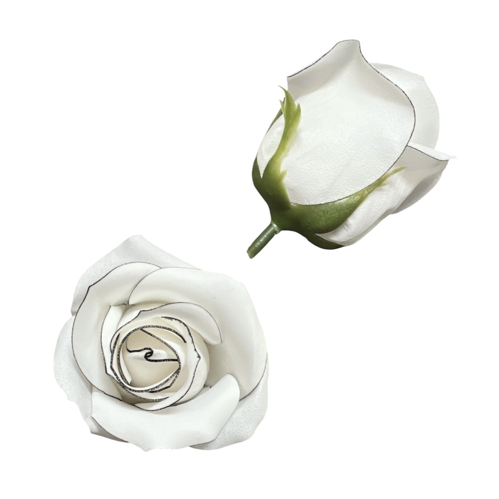 Szappanrózsafej fehér, fekete körvonallal 7x5,5 cm