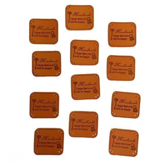 Tábla felirattal bőr 4x4cm barna 12db/cs