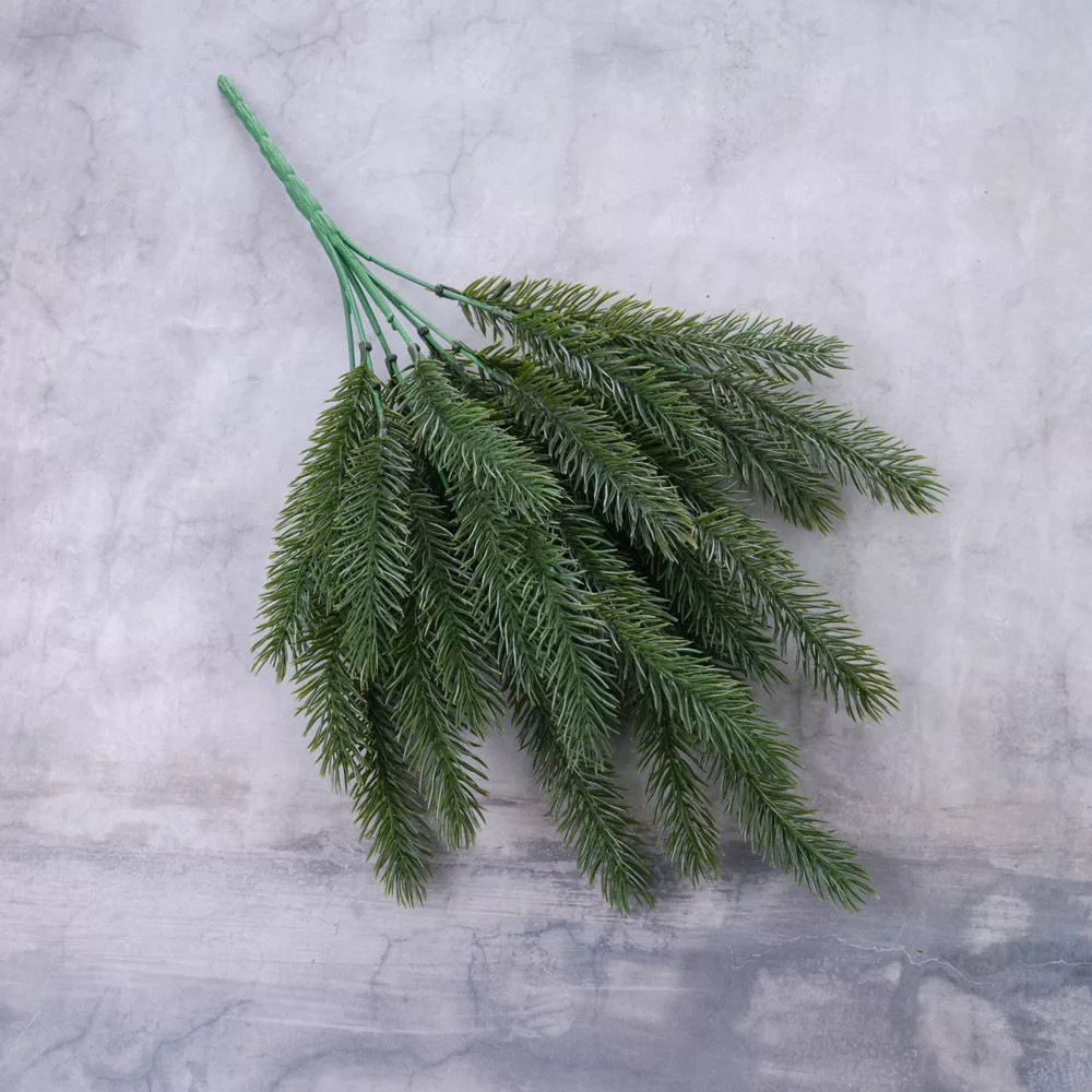 Ez a 41 cm magas, sötétzöld tűlevelű dekorág rendkívül élethű megjelenésével a természet frissességét viszi az otthonodba. Ideális karácsonyi asztaldíszekhez, koszorúkhoz, kompozíciókhoz vagy vázadísznek is. Tartós, könnyen formázható anyagból készült, így hosszú távon megőrzi szépségét. Letisztult stílusa miatt remekül illik modern és klasszikus enteriőrökbe egyaránt.