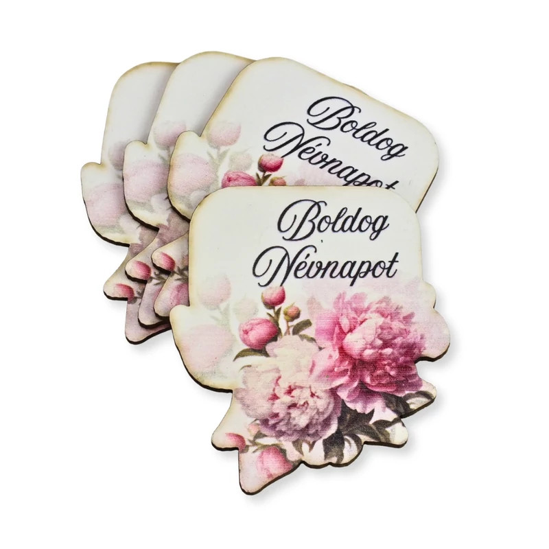 Nyomtatott dekorkarton - Boldog névnapot virágos tábla - rózsaszín/db
